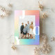 Este cartão com fotos de feriado moderno apresenta um fundo pastel de gradiente com a saudação "JOY", com uma foto vertical de solteiro. Este design acomoda uma foto vertical do solteiro na parte frontal da placa. No verso está o mesmo plano de fundo de gradação, ao qual você pode adicionar outra foto ou texto adicional selecionando a opção "personalizar mais".