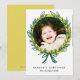 Esta placa de feriado plana apresenta uma coroa puxada à mão para colocar sobre uma estrutura de fotos redonda para uma aparência divertida e única! Personalize com sua própria foto, saudação e nome da família.