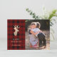 Um clássico estilo de verificação de búfalos vermelho e preto, xadrez quente e aconchegante, como um cobertor de lã numa noite fria de inverno. Uma silhueta falsa de ouro de cervo traz um toque moderno de brilho para um sentimento sazonal e festivo. Exclua a camada de backer padronizada e escreva sua própria mensagem de alegria de feriado. Fotografia por Storytree Studios, Stanford, CA
