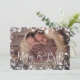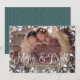 Cartão com fotos de feriado simples e chic apresenta sua foto favorita da família sobreposta com uma borda branca de um boque que evoca a aparência de uma janela gelada e fosco. "Feliz e Brilho" aparece na parte inferior em caracteres modernos de script branco. Personalize com seu nome de família e o ano aninhado na design. Cartões invertem para um padrão sutil de vinha em verde-primavera.