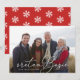 Este cartão com fotos de Natal apresenta a frase "sretan Božić" em uma escrita branca moderna. Sua foto é exibida atrás. O fundo é um padrão vermelho de floco de neve. A cor pode ser alterada usando a ferramenta de personalização. Selecione na paleta ou use seu próprio número hexadecimal.