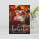 Este cartão com fotos de Natal apresenta as palavras "ho ho ho" numa caligrafia branca moderna. Sua foto é exibida atrás. O fundo é um padrão vermelho de floco de neve. A cor pode ser alterada usando a ferramenta de personalização. Selecione na paleta ou use seu próprio número hexadecimal. Fotos mais escuras funcionam melhor com este design. Graphic ©Prettygrafikdesign
