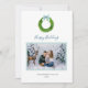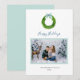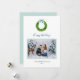 Celebre a alegria da estação com este cartão de saudação de Natal personalizado com uma fabulosa coroa aquática enfeitada com um belo arco azul. Este design elegante é a maneira perfeita de compartilhar desejos calorosos com entes queridos. Adicione sua foto de família para criar um cartão verdadeiramente único e sincero que será apreciado por anos.