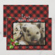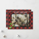 Mostre sua foto favorita de Natal/Feriado com este clássico cartão de xadrez de búfalos vermelho e preto. Estes cartões de Natal apresentam um padrão de xadrez de búfalos vermelho e preto sobre um galho holly de cor d'água e um lugar para a foto favorita do seu animal de estimação (ou pessoas). Fácil de personalizar com sua própria mensagem.