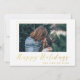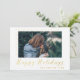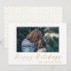 Um belo cartão com fotos com pequenos pontos preenchidos com uma textura de folha de ouro e "Felizes Feriados" em uma letra desenhada à mão, também enfeitiçada com uma textura de folha de ouro. Basta adicionar sua própria foto e personalizar o nome e o ano na frente do cartão! Há um quadro branco ao redor da foto, para que qualquer tamanho que você colocar nela seja enquadrado. A parte de trás do cartão está cheia de belos pontos de folha de ouro.