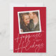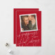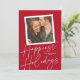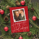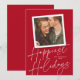 Este cartão com fotos moderno, porém elegante, apresenta um grande roteiro "Feriados mais felizes" em branco sobre um fundo clássico de cor vermelha com uma foto quadrada de solteiro. Na parte traseira da placa está a mesma cor vermelha. **TODAS as cores são personalizáveis - cor de fundo, cor do texto, até mesmo cor do script de caligrafia! Basta clicar em "personalizar design mais" no menu suspenso.**