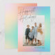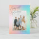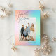 Este cartão com fotos de feriado moderno apresenta um plano de fundo pastel com as saudações "Feriados mais Felizes" e uma foto vertical solteiro. Este design acomoda uma foto vertical do solteiro na parte frontal da placa. No verso está o mesmo plano de fundo de gradação, ao qual você pode adicionar outra foto ou texto adicional selecionando a opção "personalizar mais".