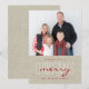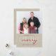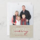 Beige Linen Rustic Cartão com fotos de Natal feliz com um simples design moderno limpo. Elke Clarke © Texto em letras vermelho e branco