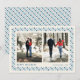 Este cartão com fotos de feriado foi criado para coordenar com o pacote de cartões de Natal "Holiday Checkerboard". O design apresenta um quadro colorido de tabuleiro em azul, roxo e verde e espaço para duas fotos da família. A parte traseira da placa apresenta um padrão completo de tabuleiro de xadrez.