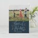 Feliz Cartão com fotos de Férias Feriados, Marinho azul e azul-céu, ilustrações de bagas, Holly, cone de pinho.
