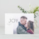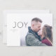 Design de cartão com fotos de férias minimalista contemporâneo de Shelby Allison, com a palavra "alegria" em um fundo branco nu. Foto: freestocks.org no Unsplash