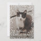 Envie este cartão de "Natal meowy" e partilhe o rosto do seu bebê pelado com os seus entes queridos. Afinal, seu animal de estimação faz parte da família! Personalize este cartão com um formato vertical, retrato, foto de sangria de cheio do seu animal de estimação, formado por uma onda de estampas e flocos de neve, bem como pelos nomes de sua família na frente. Adicione mais texto e fotos às costas para um toque pessoal extra.