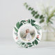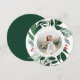 Cartão com fotos elegante em forma redonda única apresenta uma foto favorita cercada por uma rica folhagem botânica verde da floresta e minúsculos bagos vermelhos. Personalize com um cartões de natal personalizado (mostrado com "deixe o céu e a natureza cantar"), e seus nomes curvados em torno da foto.