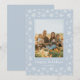 Esta placa de feriado plana apresenta uma foto de solteiro enquadrada em uma linha de cor sólida ao redor da foto e um padrão com flocos de neve desenhados manualmente em folha vermelha.
