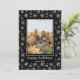 Esta placa de feriado plana apresenta uma foto de solteiro enquadrada em uma linha de cor sólida ao redor da foto e um padrão com flocos de neve desenhados manualmente em folha vermelha.