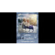 Na frente: Uma parede russa de madeira azul de inverno como fundo. Com flocos de neve brancos, folhagem e bagas como decoração. Com um modelo para sua foto de família e seu nome de família. Com o texto: Feliz Natal escrito com um roteiro de estilo manuscrito. Cartas brancas. Traseira: a parede de madeira e uma imagem moderna, engraçada e abstrato de uma rena em branco. Modelos para os desejos de férias, saudações e os nomes dos membros da família.
