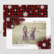 fundo vermelho de xadrez de búfalo em tela plana de cor d'água espalhada com flocos de neve brancos e sua própria foto no centro e o script personalizado em fonte serif elegante