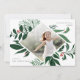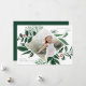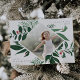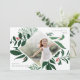 Elegante cartão com fotos de feriado apresenta uma foto favorita cercada por uma borda geométrica de folhagem botânica verde florestal rica e minúsculos bagos vermelhos de cor d'água. "Que o céu e a natureza cantem" aparece no canto superior direito em letras de cinza, com seu nome familiar no canto inferior esquerdo. Personalize as costas com três fotos adicionais e uma mensagem pessoal.