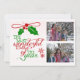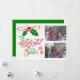 Este belo cartão com fotos de feriado contém duas fotos e apresenta groselhas e flocos de neve com texto tipográfico de vermelho e verde em um fundo branco que lê A Mais Maravilhosa Hora do Ano. As costas estão verdes com uma área decorativa de texto que lê Feliz Natal. Adicione facilmente seus nomes e o ano atual!