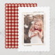Cartão com fotos Dourado de Natal com Padrão de Xadrez Vermelha de inverno no verso.