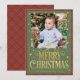 Torne os espíritos brilhantes com este Cartões de foto de Natal festivo com uma xadrez vermelha, fundo verde, sotaques dourados e uma tipografia ousada de "Feliz Natal". Personalize com sua foto favorita, seu nome de família e ano para um cartões de natal animado e personalizado que se destaca com charme clássico.