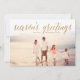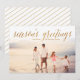 Estes cartões de natal simples e clássicos apresentam uma foto e brilham com "saudações da estação" em escrita de caligrafia. Personalizado com seu próprio nome familiar. A parte traseira dessas placas possui um design de stripe de bateria.