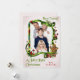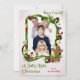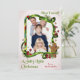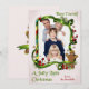 Borda de fita festiva e divertida, bagas e pão de gengibre doce Invólucro rosa. Este cartão de Natal cortou a área para o seu carregamento de fotos. O texto da frente sobre este cartão de Natal diz "Tenham um pequeno Natal Jolly". Personalizar a área de texto do nome. A carta de volta tem um tema cor-de-rosa e o sotaque do Ginger.