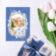 Cartão de saudação de felz pascoa com design floral botânico com flores silvestres, margaridas, hálito de bebê e pânico em cores pastéis leves de azul-bebê, roxo e lilás. Personalize o cartão de saudação com sua própria foto e texto!