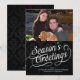 Fundo preto clássico e elegante com texto de script de rico branco. Saudações à sua família e amigos com classe e sofisticação nesta temporada de festas com este cartão de saudação em formato plano de foto de na moda. Todos os Designs Copyright © 2013 www.zazzle.com/ChristmasCardShop* com!