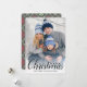 Esta design apresenta uma fotografia simples de Natal feliz, uma fotografia familiar, com uma cinza vermelha verde festiva branca, cartões com fotos de férias mínimos minimalistas, um moderno padrão nórdico elegante, com o padrão de férias com flocos de neve de inverno, um clássico elegante e simplista, com um modelo vertical com sangria de cheio, um roteiro de caligrafia na moda, um estilo criativo e simples de tipografia