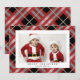Personalize este clássico design bege, preto e tartano vermelho com sua própria bela foto e saudações para um cartão de Natal na moda que trará alegria aos seus entes queridos.