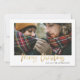 Festividades Cartão com fotos de xadrez verde de Natal Dourado
