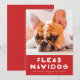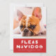 Este cartão com fotos de feriado bonito e engraçado apresenta um fundo vermelho festivo com uma saudação que diz "Fleas Navidog" em branco e sua foto. Este é o design perfeito para qualquer dono de cachorro! O backer apresenta um padrão de pontos vermelho e branco divertido. Para personalizar este design, você pode adicionar outra foto ou texto adicional no verso.