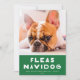 Este cartão com fotos de feriado bonito e engraçado apresenta um fundo verde festivo com uma saudação que diz "Fleas Navidog" em branco e sua foto. Este é o design perfeito para qualquer dono de cachorro! O backer apresenta um padrão de pontos verde e branco divertido. Para personalizar este design, você pode adicionar outra foto ou texto adicional no verso.