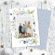 Este elegante e clássico cartão com fotos de feriado mostra sua foto enquadrada por lindas folhas de aquarela, bagas e outros verdes sobre um simples fundo branco. A saudação à frente diz "FELIZES FÉRIAS" em uma fonte serif clássica. A parte traseira do cartão tem um simples fundo verde-sábio e uma faixa diagonal branca, que pode ser removida se desejado. Você também pode adicionar outra foto ao verso e/ou texto adicional ao verso.