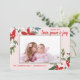 Este cartão de Natal apresenta um design floral moderno sobre um fundo cor-de-rosa pincelado com cantos arredondados. Personalize-o com sua própria foto e texto.