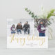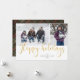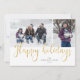 Dourado Script "Feliz feriado" em falso brilho com padrão de tartan de inverno rústico, 2 cartões de feriado fotográfico.