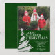 Um cartão com fotos moderno do feriado que caracteriza uma árvore de Natal de prata cobriu com uma estrela em um fundo verde. Personalize facilmente com seus próprios foto e texto! O design é ilustrações/gráficos impressos plano - FOLHA DE PRATA NAO REAL. Para resize e posicionar sua foto, clique sobre "PERSONALIZAM-NO" botão.