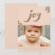 Pêssego macio lindo com tipografia e sotaque de bronze. Literatura/tipografia de alegria de bronze adorável em fundo de pêssego mole bonito. Acentos brilhantes de brilho de diamante que adicionam um toque elegante a esta simples, minimalista e bela design. Adicione seu próprio retrato/foto de natal a este modelo de foto de Natal fácil e rapidamente on-line, aqui e agora.