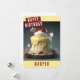 Um cartão de aniversário bonito com um bolo de aniversário temático "Branca de Neve" na frente com "Feliz Aniversário", bonés negros. Personalize a frente adicionando seus nomes. O dentro da placa apresenta espaço para a sua mensagem escrita ou manuscrita.