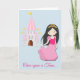 Aqui está um cartão de aniversário fofo para a neta ou filha que sonha ser uma princesa! A frente do cartão tem uma princesa bonito de cabelos escuros vestindo uma coroa dourada e um vestido rosa brilhante. Atrás dela, à distância, está seu castelo rosa e branco com bandeiras douradas voando. O texto no final diz "Era uma vez..." O dentro da placa tem um coração vermelho no dentro à esquerda e campos de texto para você personalizar no dentro à direita. Bonita princesa na sua vida!