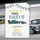 Cartão de Aniversário de 2 Anos Dobrado com Carro de Corrida Crescendo Rápido