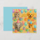 Feliz cartão de aniversário para bebês. Kitten, filhote e elefante.
