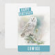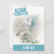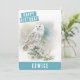 Um cartão de aniversário de aquarela, com uma coruja celebrando o inverno na frente, com "Feliz Aniversário" em uma fonte branca e boné em negrito. Personalize a frente adicionando seus nomes. A parte traseira da placa apresenta espaço para sua mensagem digitada ou manuscrita.