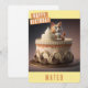 Um cartão de aniversário com um gatinho sentado num bolo de aniversário na frente com "Feliz Aniversário", bonés negros. Personalize a frente adicionando seus nomes. O dentro da placa apresenta espaço para a sua mensagem escrita ou manuscrita.