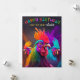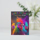 Este cartão de aniversário incrivelmente colorido apresenta três galinhas, uma no centro e duas à esquerda e à direita atrás dele. As galinhas parecem fotorealistas exceto pelas cores do arco-íris. No topo, o texto lê "Parabéns dos pintinhos loucos", fazer um cartão único e divertido para o aniversário de alguém especial.