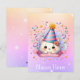 Celebrar ocasiões especiais com o nosso adorável cartão de aniversário com tema de gatos! Este charmoso design apresenta um gato giro vestindo uma festa cercada por confetti em um fundo de brilho pastel. Perfeito por enviar desejos de aniversário para seus entes queridos!