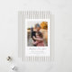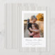 Um clássico cartão de férias plano com listras finas bege e branco, uma mensagem 'Feliz Ano Novo' em uma fonte de caneta tinográfica tradicional com texto totalmente personalizável abaixo e uma foto. O suporte tem o mesmo padrão de listras, mas pode ser facilmente trocado por uma foto, se preferir. Disponível em diferentes cores e com diferentes mensagens de férias na minha loja.
