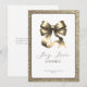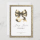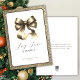 Cartão de cumprimentos de alegria natalina moderna com um luxuoso laço dourado no centro, emoldurado por uma borda dourada brilhante. A tipografia moderna é preta suave que complementa o dourado, combinada com a mensagem "Alegria, Amor & Brilho" captura o espírito da temporada de forma elegante e sofisticada. Fácil de personalizar com seus detalhes pessoais. Perfeito para enviar a amigos, familiares ou colegas.