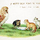 Cartão de Ano Novo de coruja e gatos Vitorianos antigos. Imagem antiga de alta qualidade, restaurada personalizada de 1800.